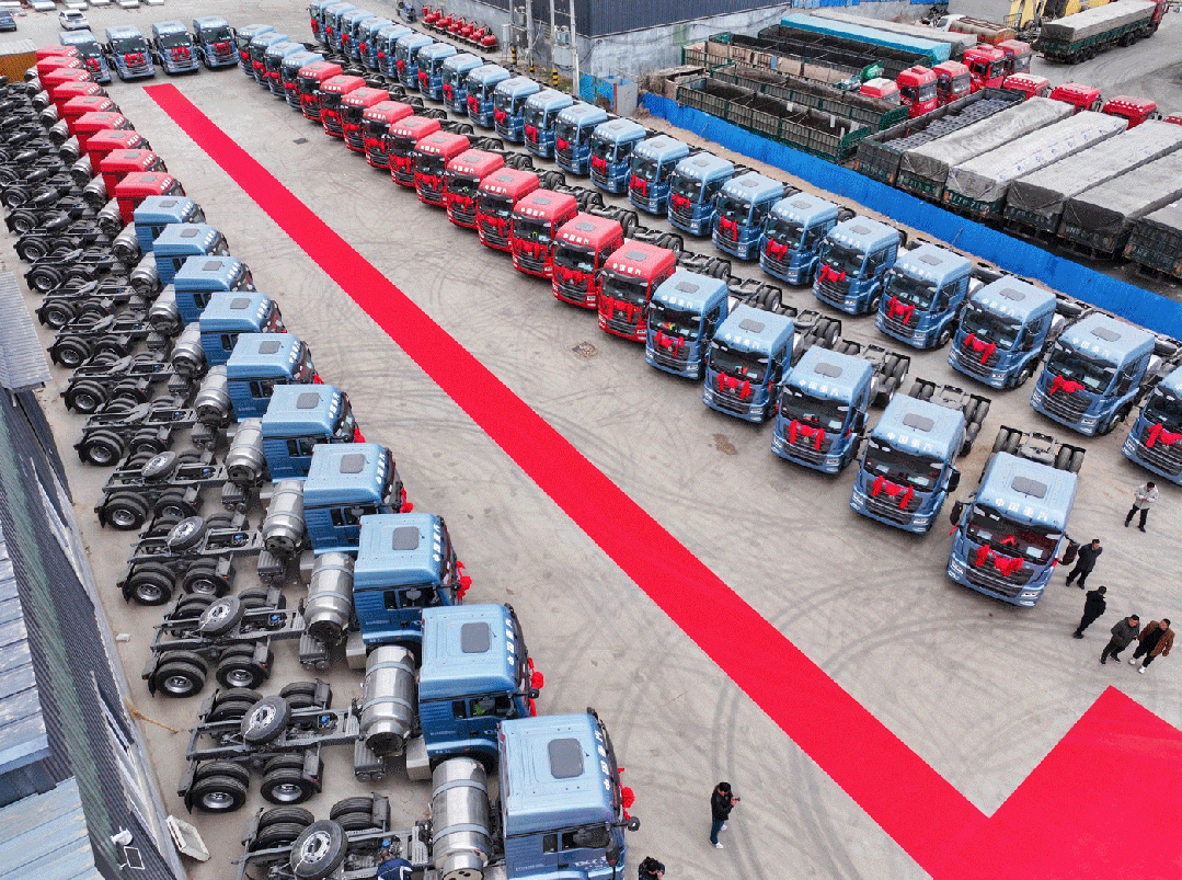 2月23日,60台豪沃TX燃气车正式交付山东冠县大客户。现场车辆身披红绸、整齐列队,这批“节气先锋”即刻奔赴运输一线,为鲁西物流枢纽高质量发展注入强劲动能。
